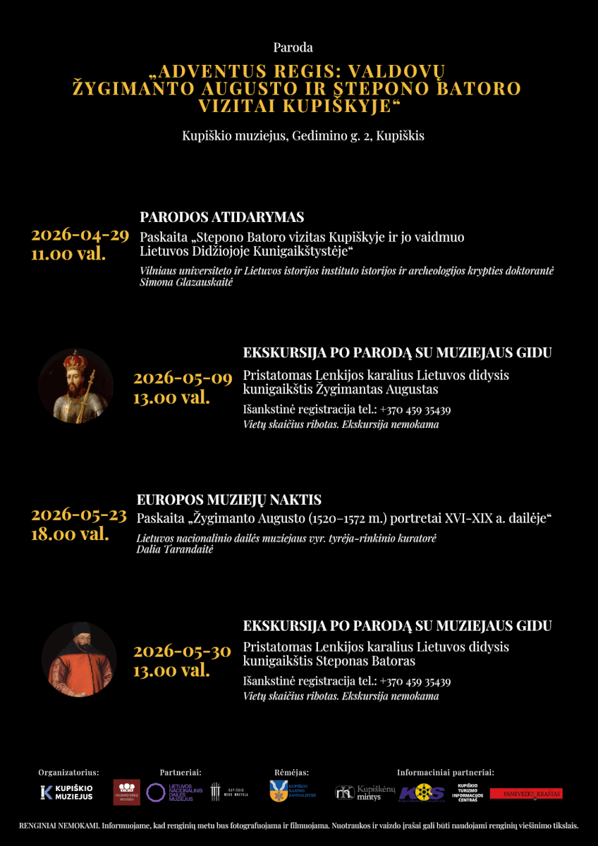 Kviečiame į parodos „Adventus regis: valdovų Žygimanto Augusto ir Stepono Batoro vizitai Kupiškyje“ atidarymą.